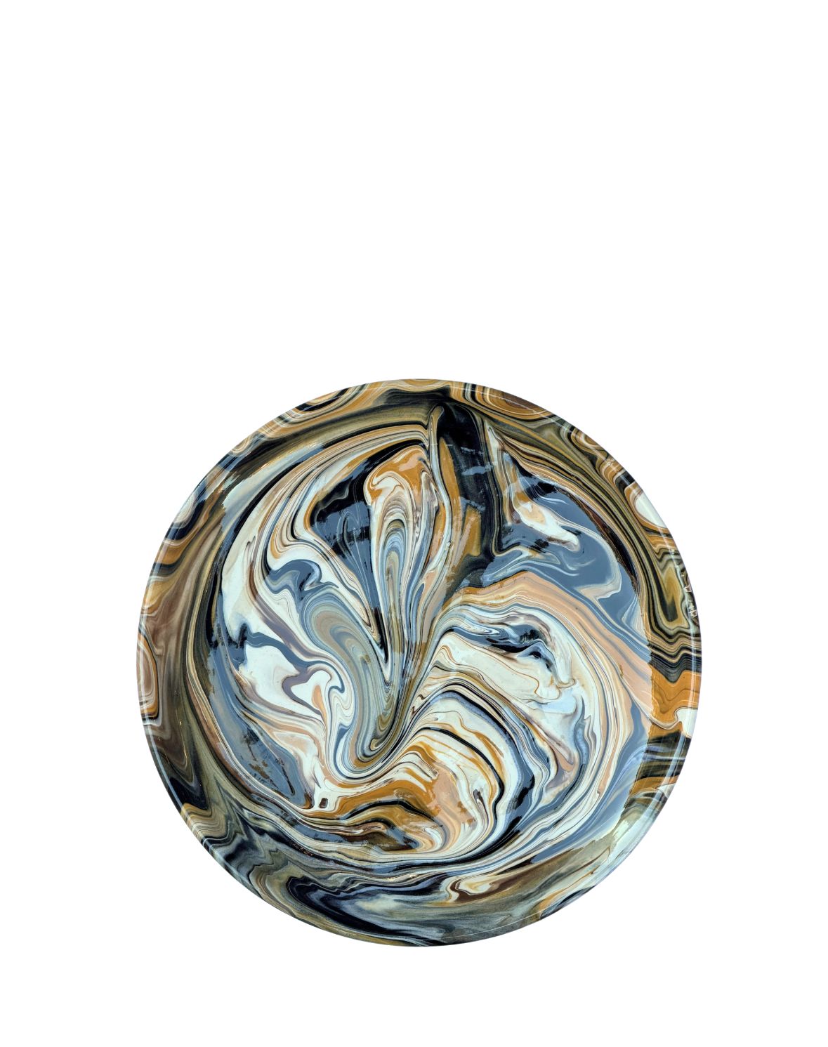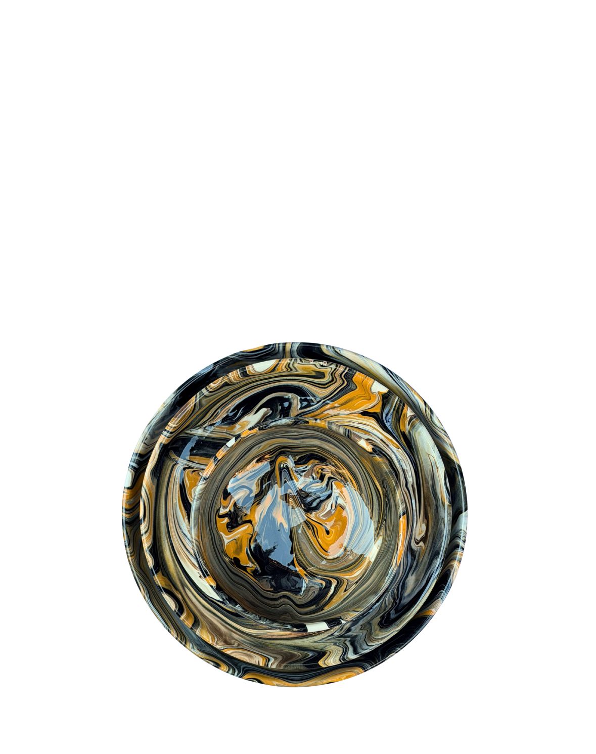 Como las dunas entre las sombras de sotavento. Así es el plato Lebeche hecho a mano en La Bisbal, con la técnica centenaria del Jaspe en tonos que van del beige al negro pasando por el marrón y naranja dorado. Un motivo  que se obtiene gracias a los esmaltes y el movimiento que realiza nuestro artesano en su taller de Girona. La tradición más sofisticada.